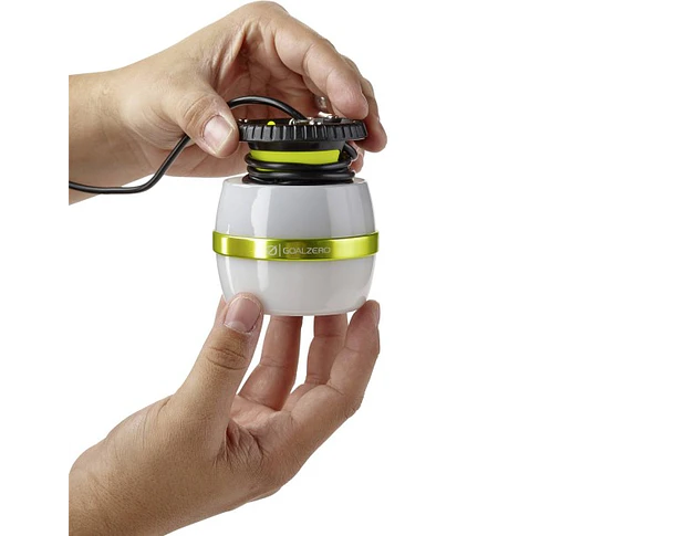 Alimente el Light-a-Life desde la estación de energía Goal Zero Yeti o desde cualquier puerto de automóvil de 12 V utilizando el adaptador incluido.